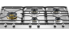 | Features | Design Type: Built Proud into your kitchen benchtop. Finish Style: Single piece stainless maintop with spill-prevention barriers. Burners: Multi-size monoblock brass burners. Wok Burner: 14.4Mj high-speed central dual wok burner, ideal for Asian cooking or for use with large pans. Pan Supports: The single cast iron pan support is both solid and secure for safe use. Control Knobs: metal knobs with a titanium look. Cooking Zones: |