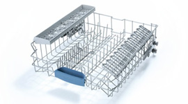 The RackMatic top basket is designed to adjust to three height levels to give you flexibility when you’re loading or unloading the dishwasher, or when you need to fit large items.