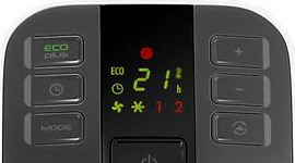 Power settings, thermostat and timer are all easily controlled via the digital control push button panel at the top of the unit.