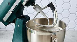 Take your baking to the next level with beautifully crafted accessories including the wire whisk, dough hook, flex edge beater and pastry beater.