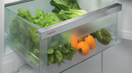 The inner door and rear wall of the fridge compartment are covered with Liebherr’s SmartSteel stainless steel panels. Not only providing a sleek look to the internal compartment, this also reduces the visibility of fingerprints and creates a ‘dry rear wall’.