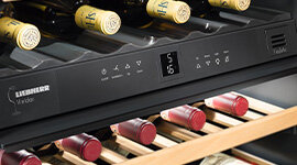 This Liebherr wine fridge features special UV-resistant glass in order to minimise radiation exposure. In this way, stocks of wine can be protected and stylishly showcased simultaneously.