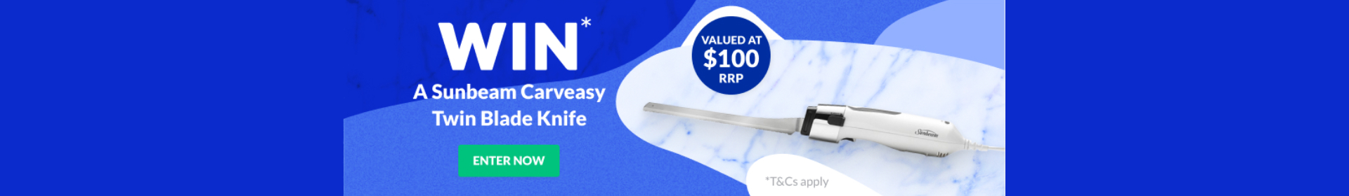 5.The prize will consist of 1x Sunbeam Carveasy Twin Blade Knife EK6000 (RRP $100.00). Prizes cannot be transferred or redeemed for cash.